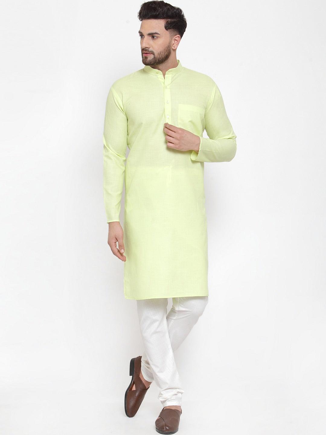 Men Lime Green & White Solid Kurta with Churidar