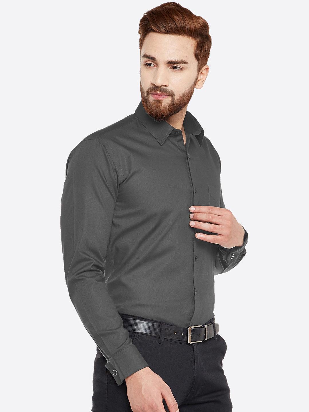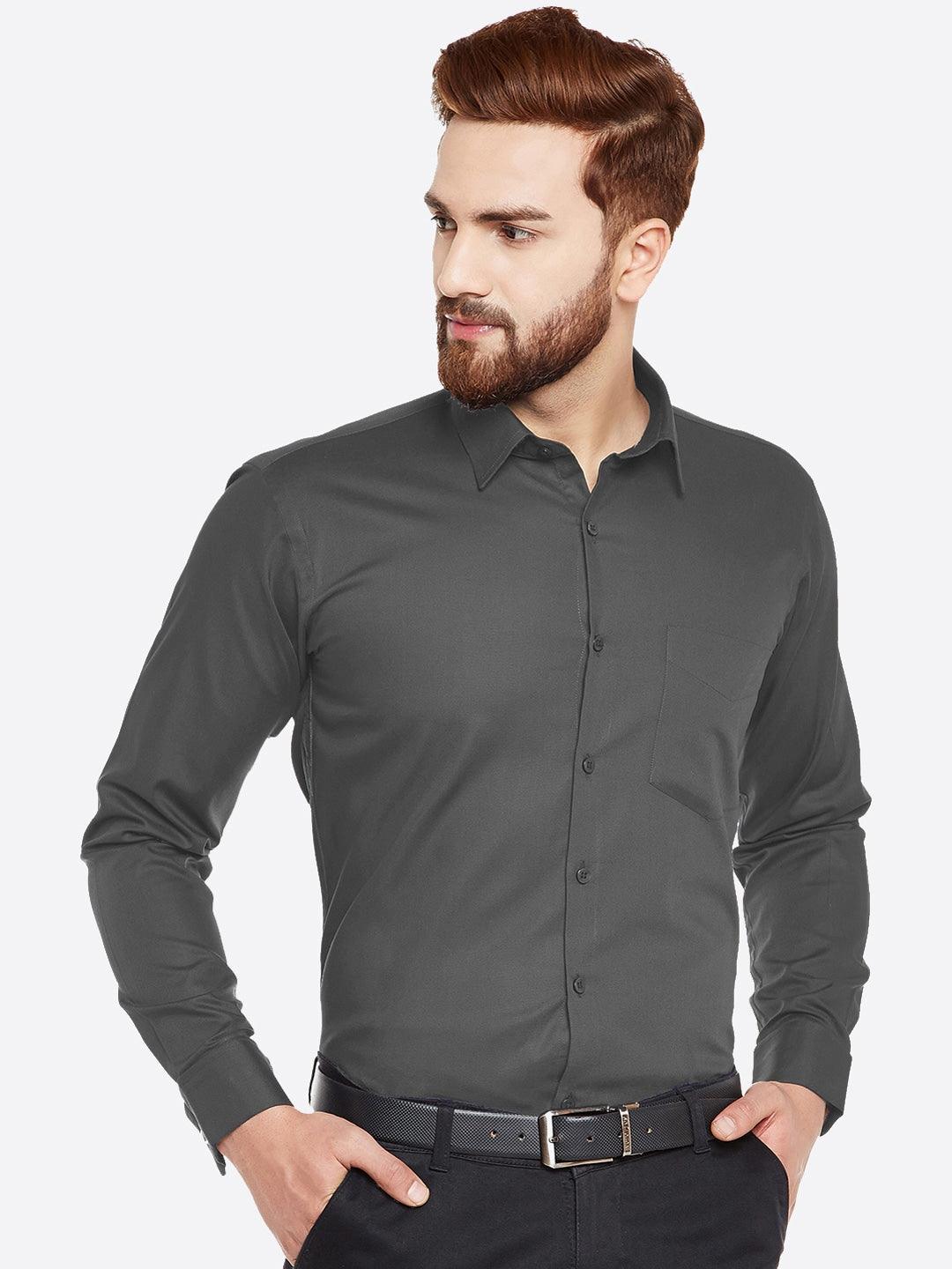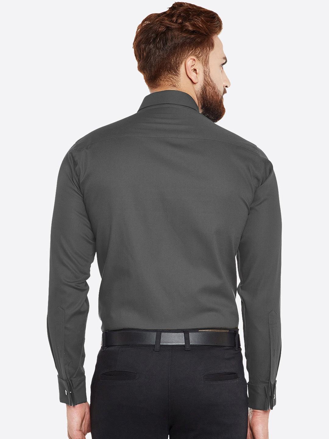 Grey regular fit formal shirt ,has a spread collar, button placket, 1 patch pocket, long roll-up sleeves, straight hem