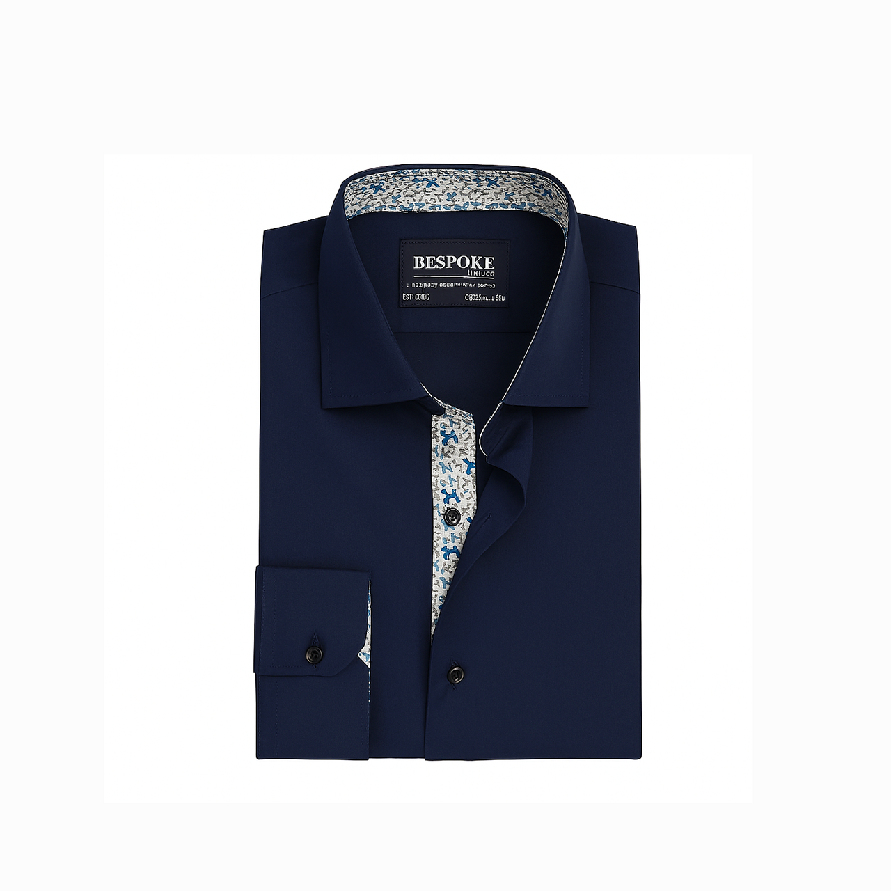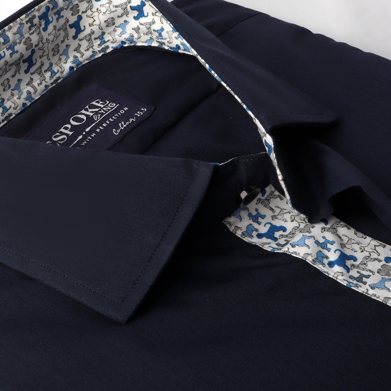 Navy Blue with Contrast Details Formal Shirt 15.5 Collar