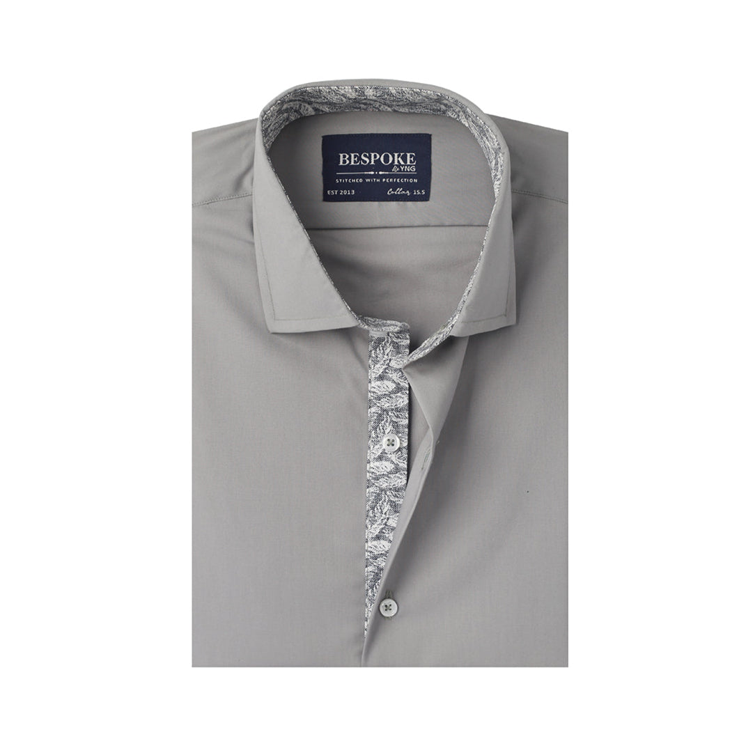 Steel Grey With Floral Contrast Formal Shirt 15.5 Collar