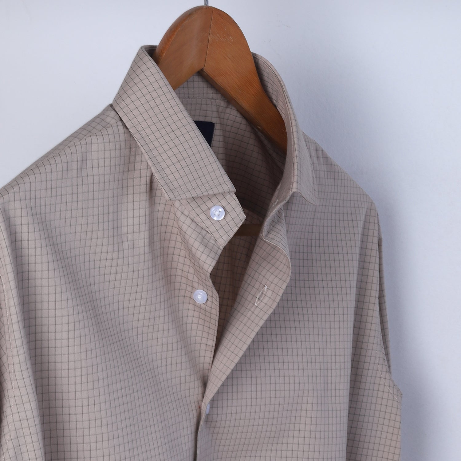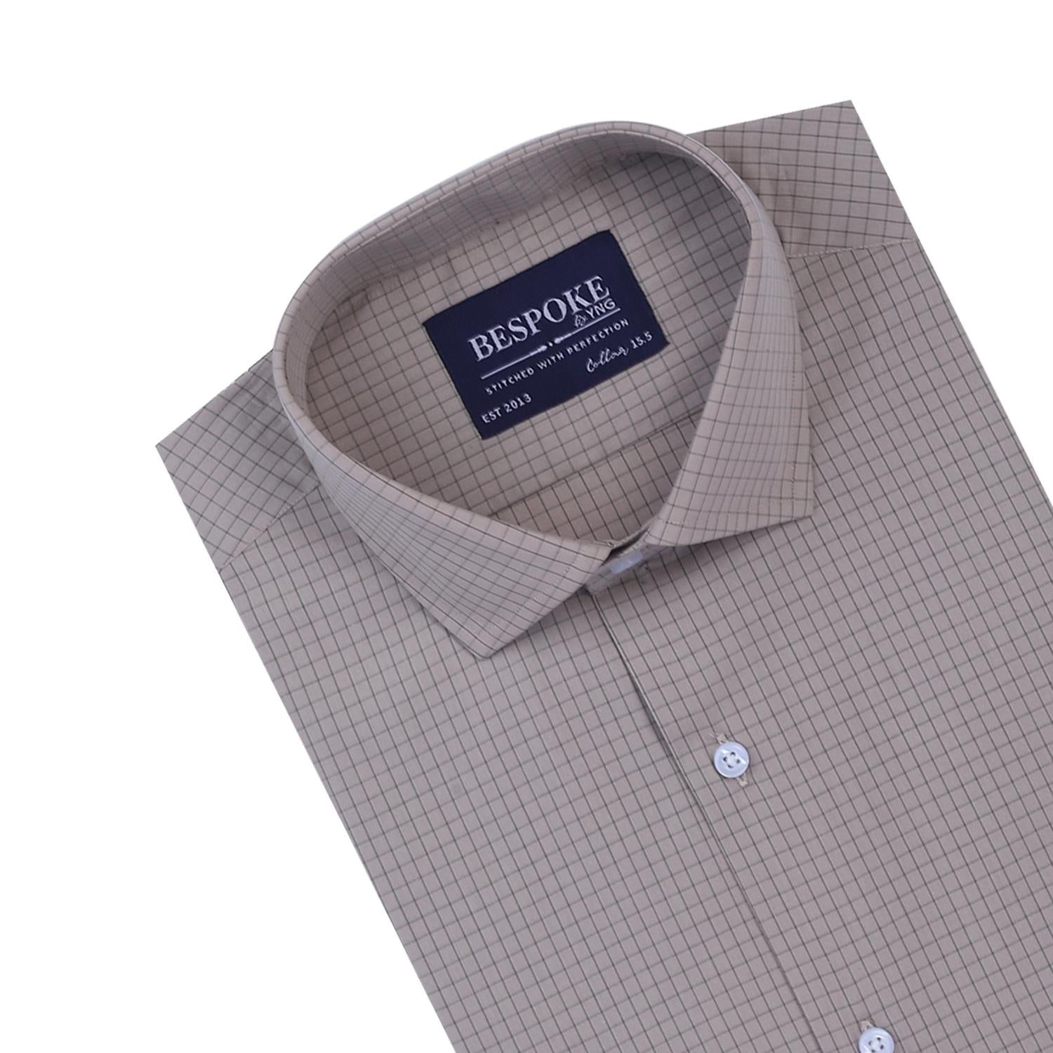 Sandy Brown Checkered Formal Shirt For Men.